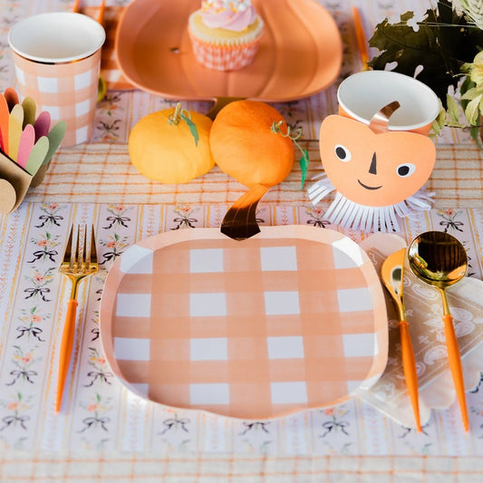 8 piatti in carta - zucca quadretti
