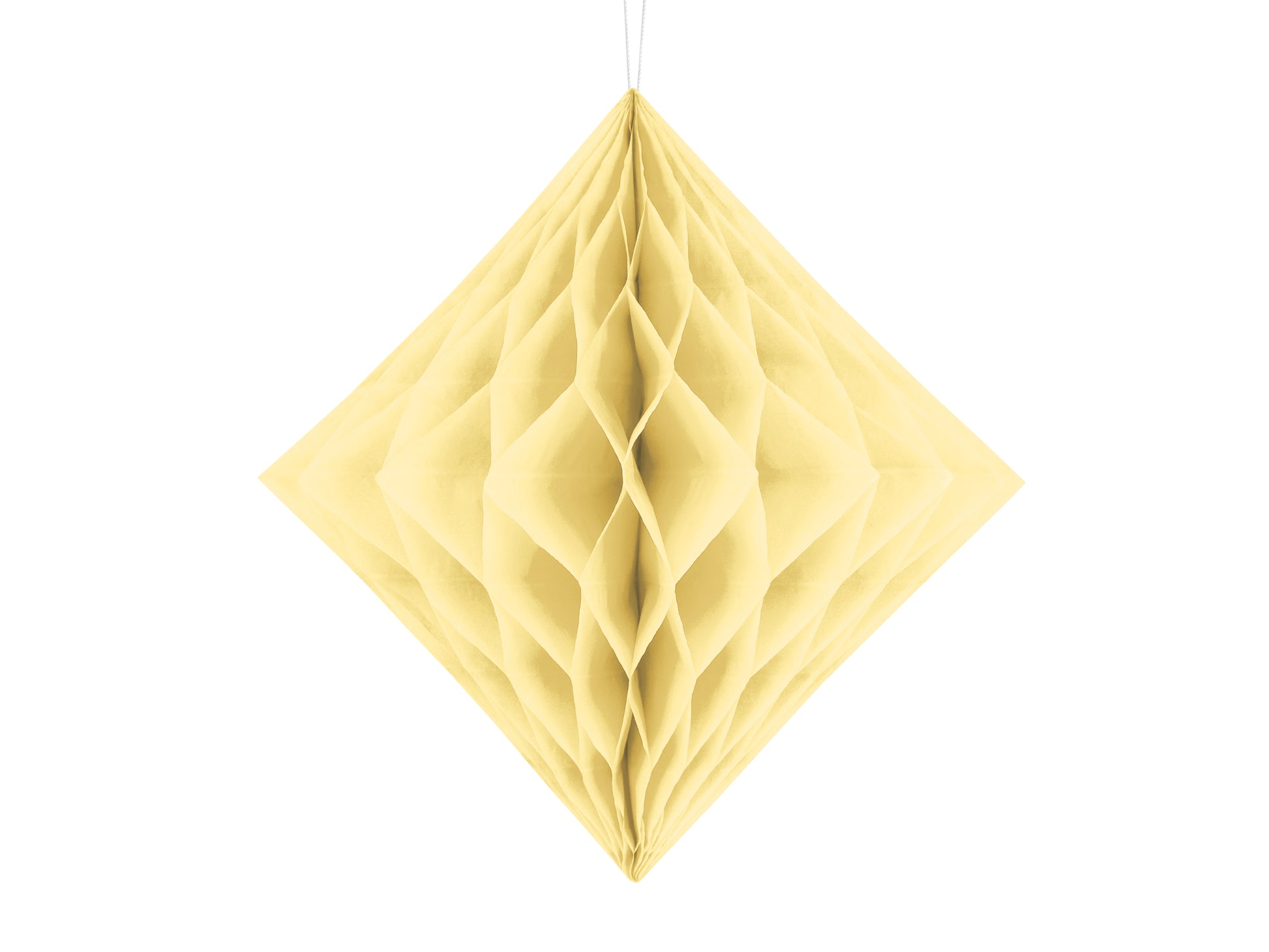 Evviva gli allestimenti fantasiosi e super colorati! Crea il tuo con questo originale decorazione in carta a forma di diamante, in carta velina a nido d'ape color crema, nella dimensione da 20 cm.